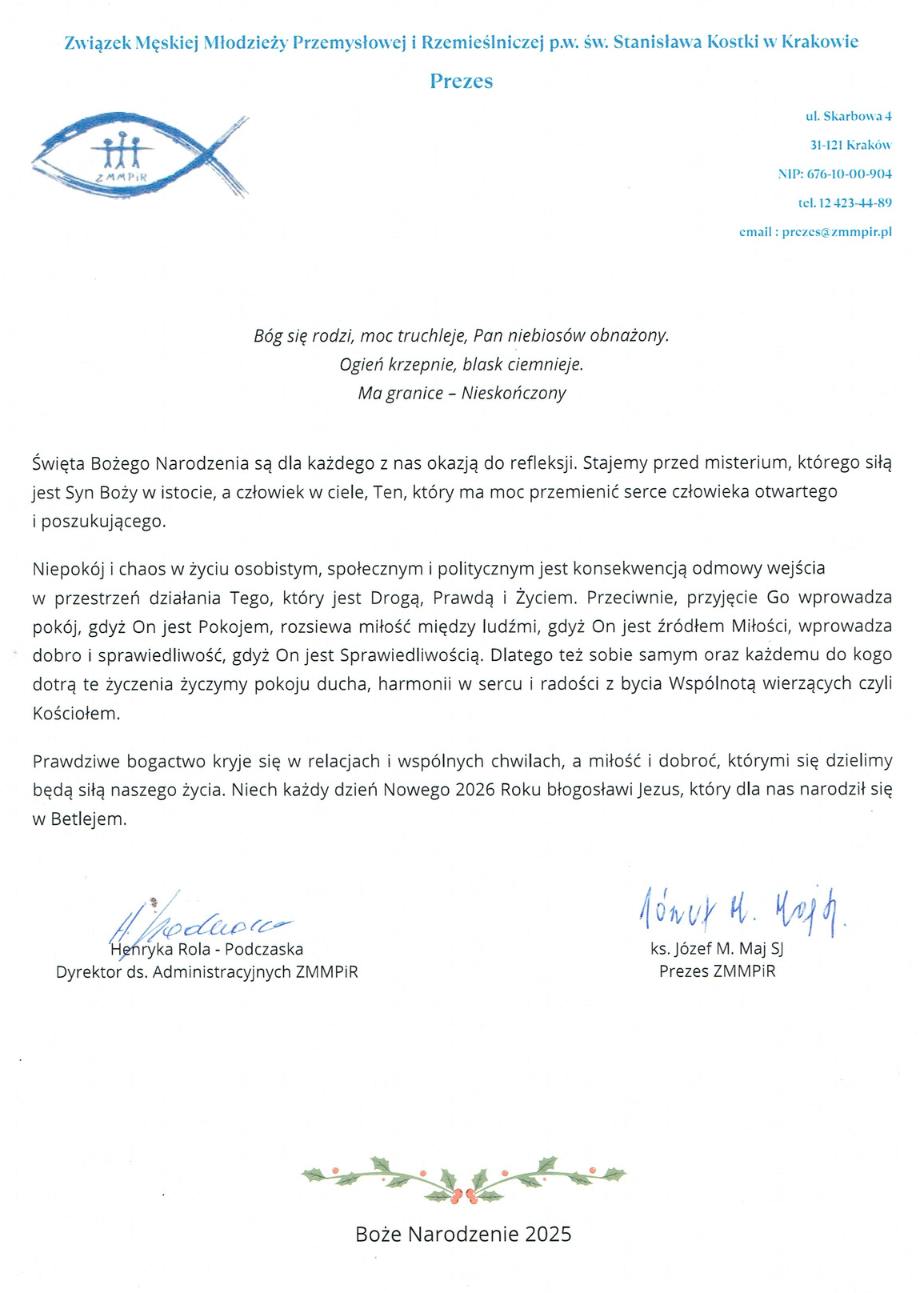 Związek Męskiej Młodzieży Przemysłowej i Rzemieślniczej pw. św. Stanisława Kostki wespół z Bursą Szkół Średnich tego Związku zapraszają na uroczyste obchody Święta Patrona św. Stanisława Kostki, które odbędą się w środę 28.01.2026 r. o godz. 17.00 w Teatrze Groteska przy ul. Skarbowej 2 w Krakowie ...
